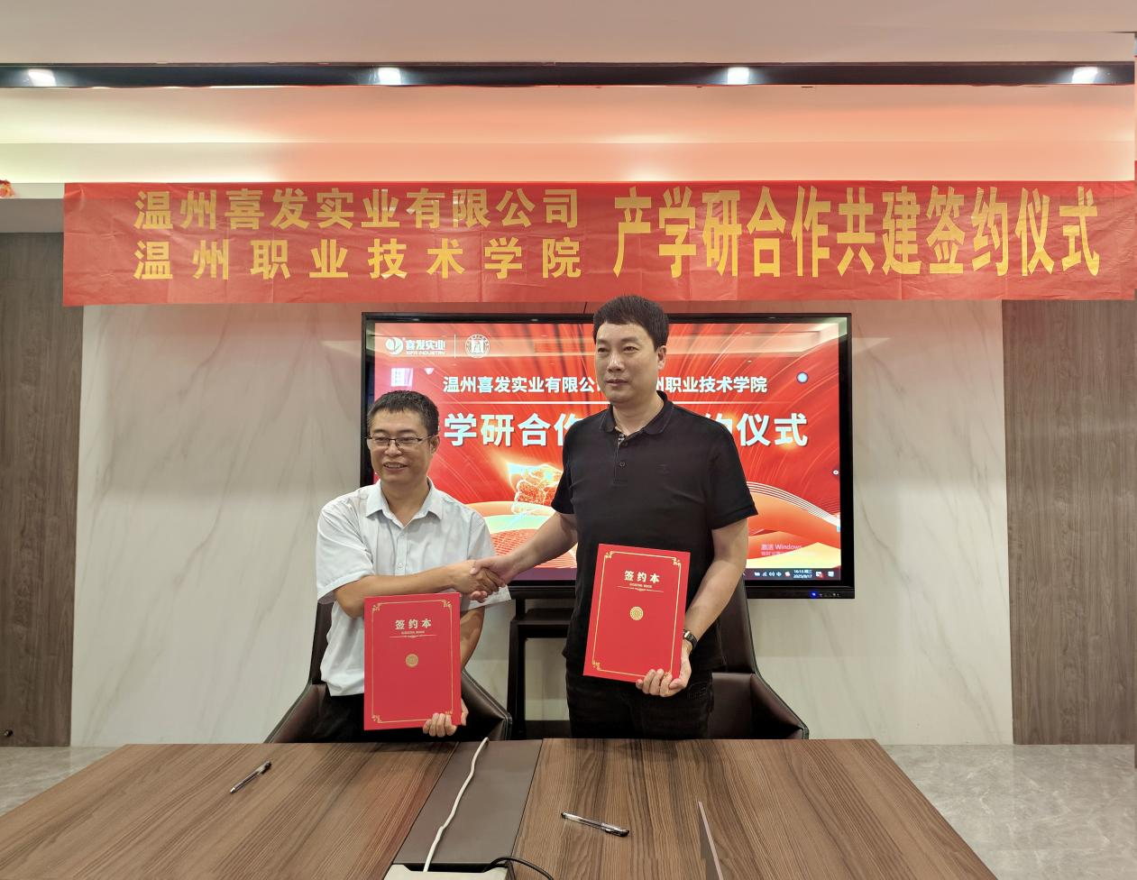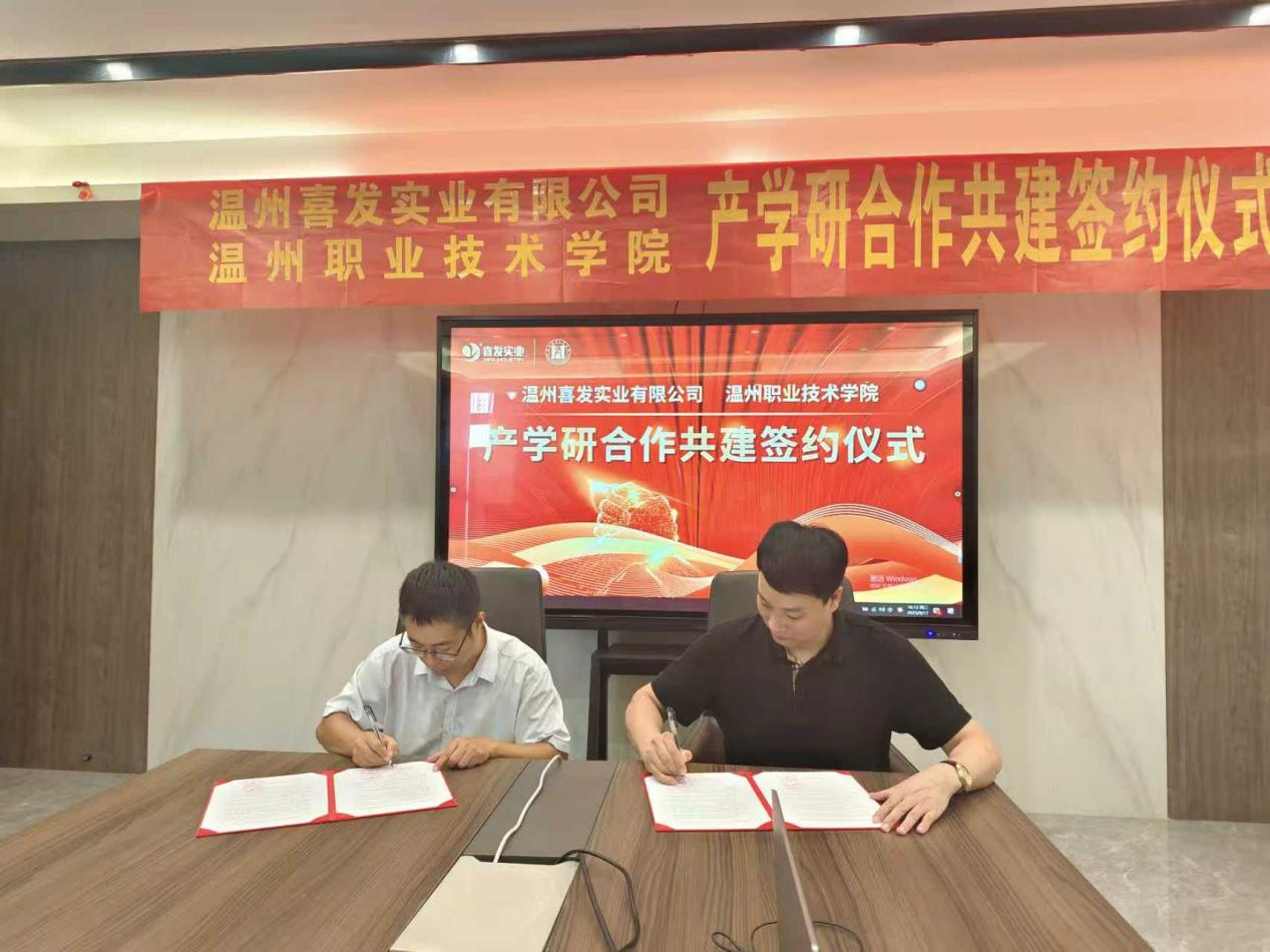 溫州喜發(fā)實業(yè)有限公司與溫州職業(yè)技術學院成功舉辦產學研合作共建簽約儀式!